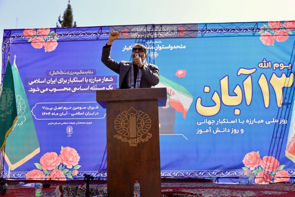 به گزارش سرویس عکس خط فارس؛ راهپیمایی روز ۱۳ آبان «روز ملی مبارزه با استکبار جهانی» همزمان با ایام شهادت حضرت فاطمه زهرا سلامالله علیها از ساعت ۹ صبح در محل محوطه ارگ کریم خان شیراز برگزار شد.